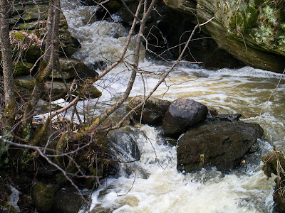 Stokkbekken flommer for tiden, jeg tar ikke stien langs den før et stykke ut i mai - når den har tørket opp litt. Det er ganske skyggefullt langs den:
